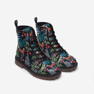 High quality supple vegan leather combat boots. Waterproof Boots that are comfortable, durable and breathable. The soles offer high levels of grip, while having anti static and oil resistant properties. Water, dirt and debris are prevented from entering thanks to the sewn in tongue and the tongue is also padded for comfort.